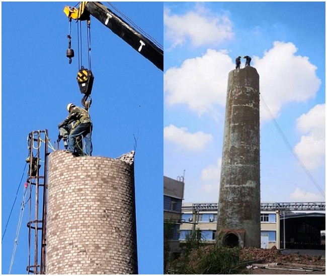 那我来说说烟囱拆除的几种方法: