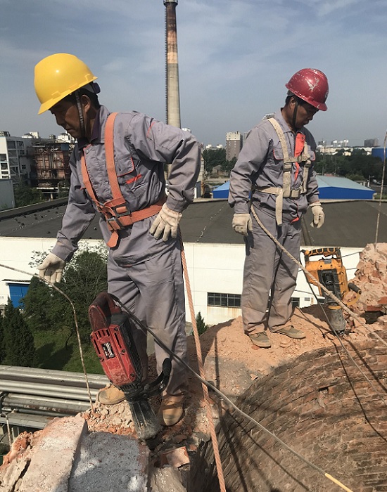 8、烟囱人工拆除施工人员单位区域完工后要求落手清。经检查不留后续隐患,方能离开作业现场。