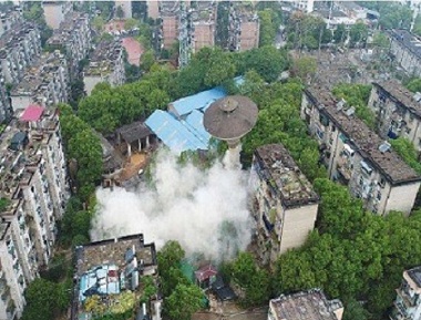 ③ 对周边环境要求较高,对临近交通要道、保护性建筑、公共场所、过路管线的建(构)筑物必须作特殊防护后方可实施爆破。它的适用范围是:用于拆除现浇钢筋混凝土结构的任何建筑物、构筑物,各类地下、水下构筑物。控制爆破拆除方法的关键在于爆破能量的控制,因此需要工程技术人员进行认真地设计和准确的计算,对管理人员和操人员都有较高的安全技术要求。