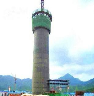 筒身施工质量要求:在施工工程中,必须保证筒身中心垂直度偏差不大于60mm,筒壁厚度误差20mm以内,筒身任何截面上半径误差不得大于半径的1%,且不超过30mm。烟道口的中心线偏差不得大于15mm,烟道中的标高偏差在20mm以内,筒壁内外及背面的局部凹凸不平,均不超过该截面的1%且不超过30mm,烟道口的高度和宽度不得大于30mm,不小于-20mm。