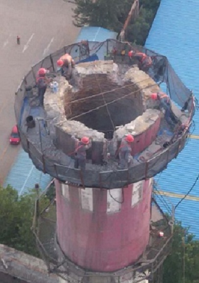 3、安全隐患大,120米烟囱拆除时可分两部分,30米以上部位采用人工拆除,30米以下部分可采用机械拆除。人工拆除全部为高空作业,安全隐患大。