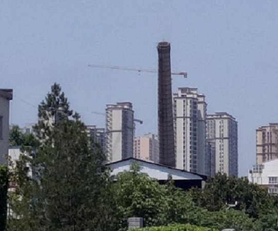 据悉,此烟囱是用来排放烧锅炉时所产生的废气。在金溪工业园区采取集中供暖后便失去了作用,所以烟囱拆除。