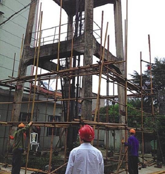 (2)水塔施工人员应先经过医务部门的体检,证明体格适合高处作业者,才能允许进行作业。在水塔操作平台的施工人员必须定期进行体检,经医生诊断凡患有高血压、心脏病、贫血、癫痫病及其他不适合高处作业疾病的不得上操作平台工作。