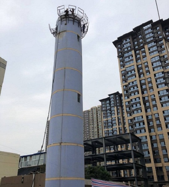 烟囱人工拆除前的防护及设备安装