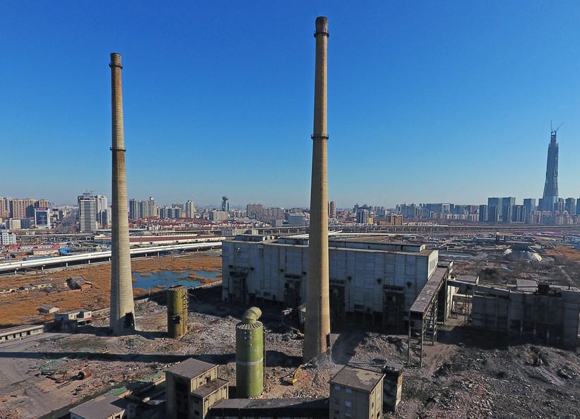 天津烟囱拆除-天津塘沽“老天碱”废弃烟囱拆除
