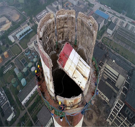 关于烟囱拆除的安全事项,必须根据现场的实际情况制定合适的方案。